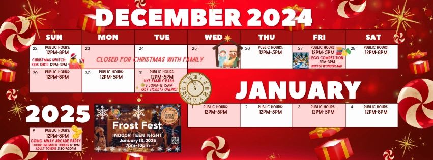 Looking to host a fun Christmas event for your family, company, or team? We've got you covered all season long with solutions ranging from simple room rentals to all-inclusive food + fun exclusive events. Contact us today to get a quote and lock in your date.